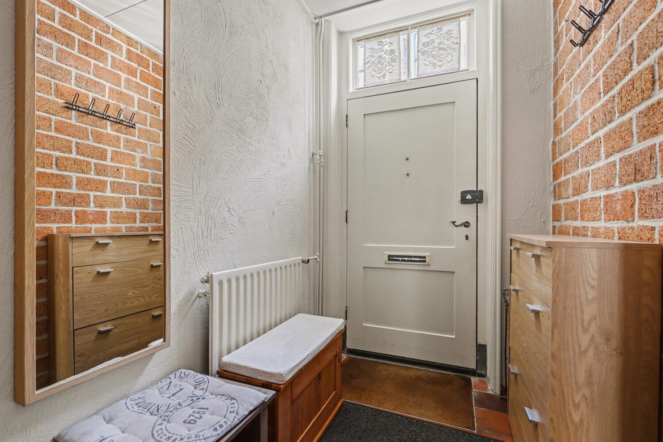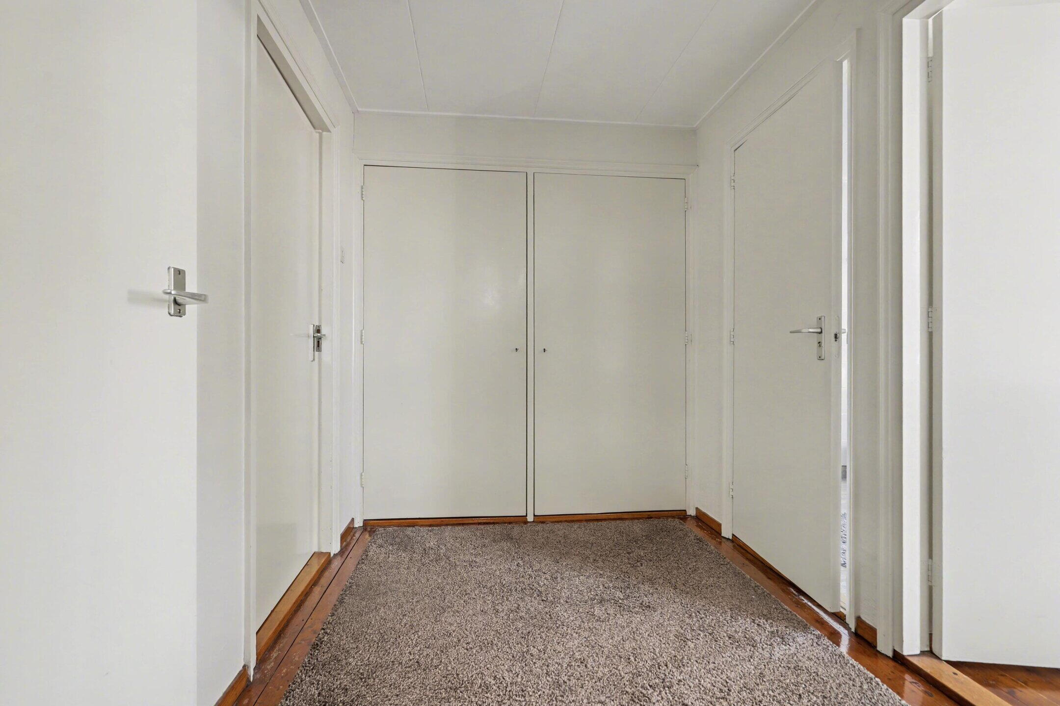 Overloop met vaste kastruimte en toegang tot de twee ruime slaap- (/werk)kamers en de badkamer.