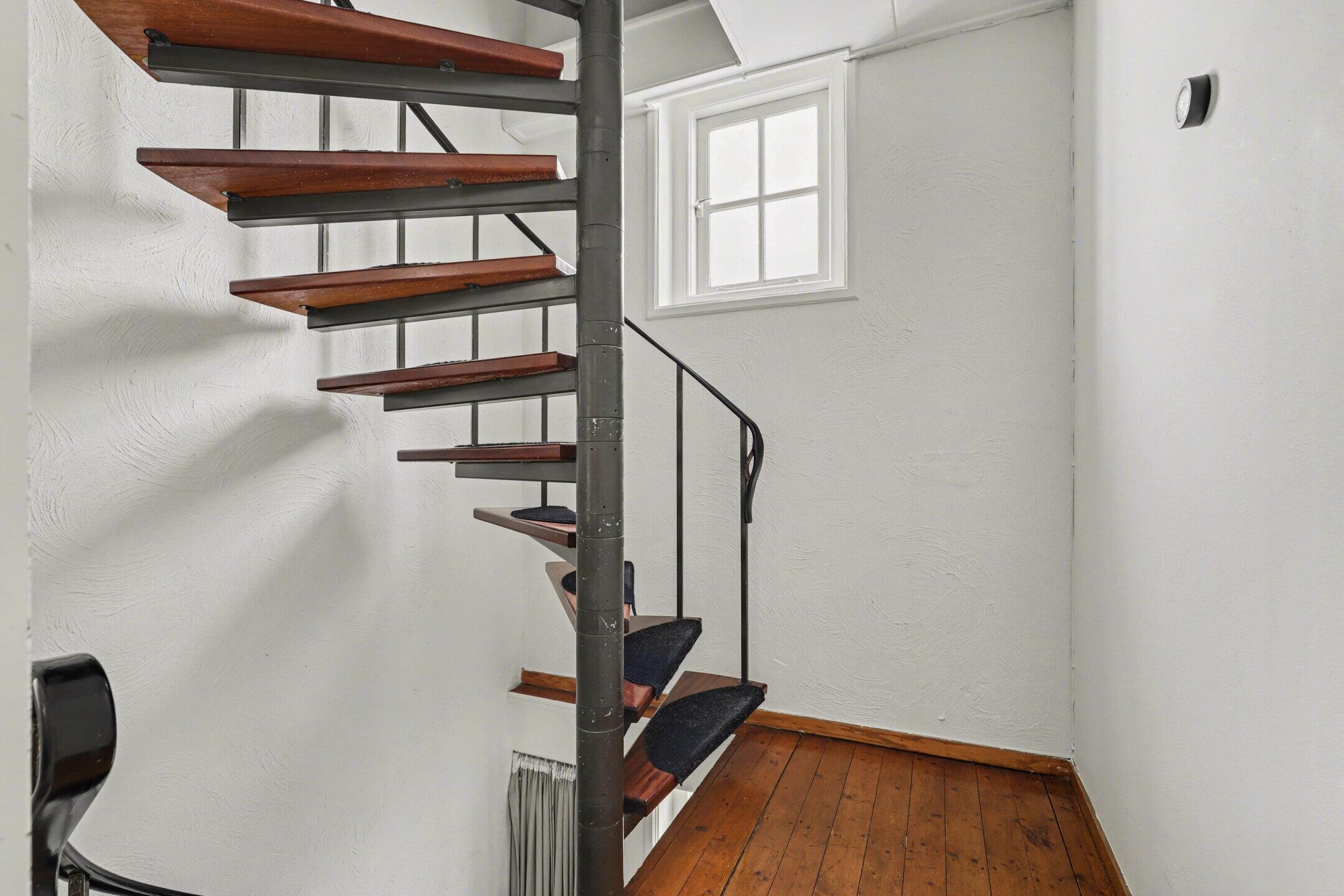 Overloop met toegang tot de twee ruime slaap-/werkkamers. Dit zijn kamers met sfeer vanwege de fraaie sporenkap en de houten vloeren.