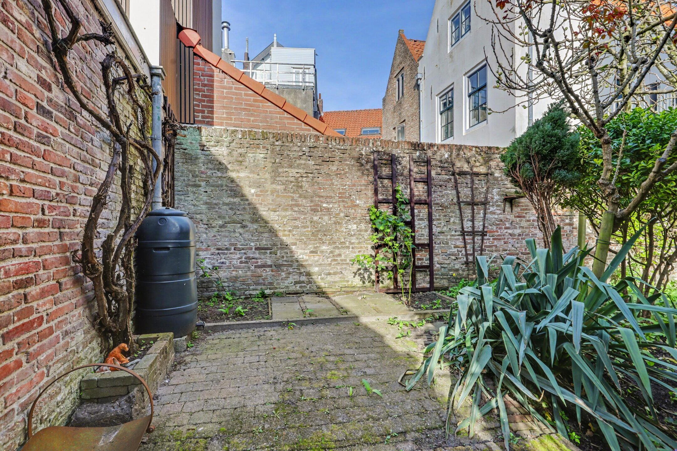Vanuit de keuken heeft u via een uitgang met het toilet toegang tot de sfeervolle stadstuin. Tevens treft u hier een eigen stenen berging met kastenruimte en een achteruitgang. Dus handig voor de fietsen.