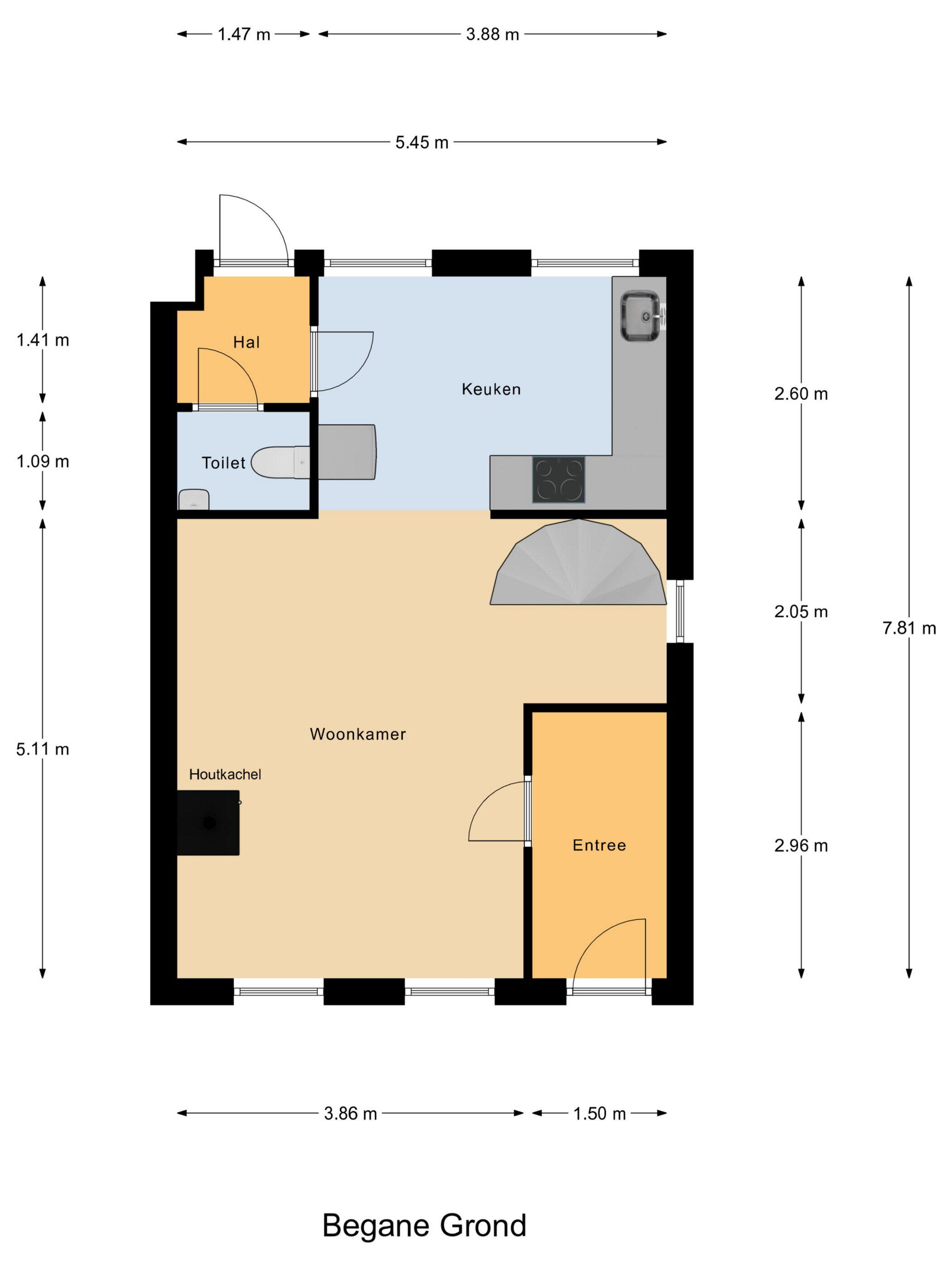 - 40 m² (8 meter diep en 5 meter breed)